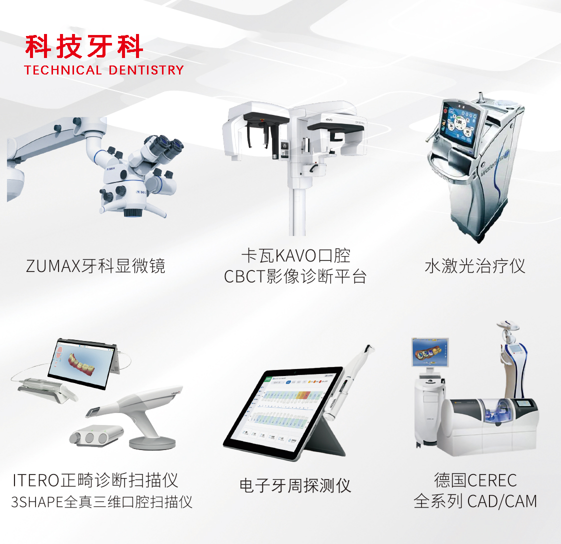 显微牙科是齿科治疗技术的再次升级,利用牙科显微镜把治疗目标放大20倍,同时配合三维口腔CT、数字化三维导航、3D全真口腔扫描仪、YSGG水激光治疗仪等齿科设备。